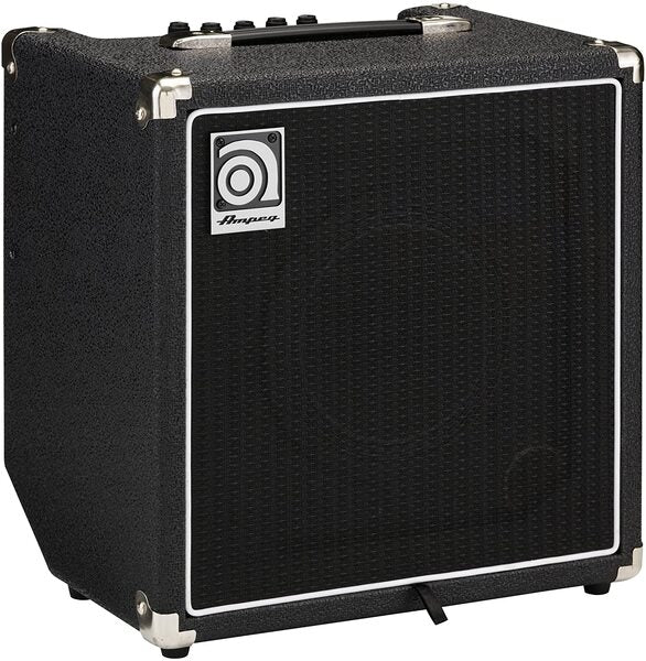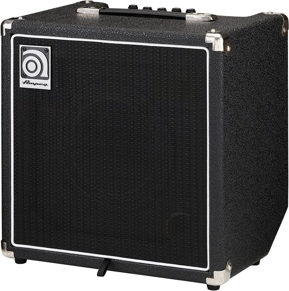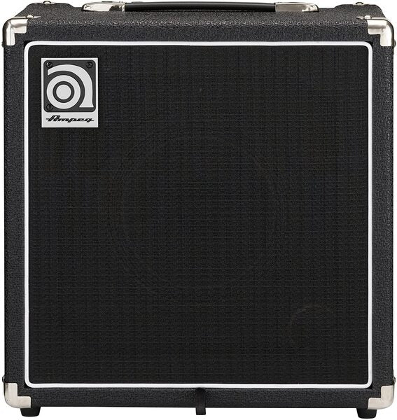 El amplificador es de una construcción sólida, acabado en tolex negro, con cantoneras metálicas cromadas para protegerlo de los golpes y asa de plástico en la parte superior. Pesa alrededor de los 12.5 kg, así que se puede mover sin excesivo esfuerzo. Una rejilla frontal en negro y una plaquita con el logo de la marca, le confieren todo el aspecto Ampeg. En la parte inferior la base queda recortada para poder ejercer de cuña y que el amplificador pueda angularse en su posición y proyectar el sonido hacia arriba. El amplificador monta un altavoz de 8” y se mueve en unos 25W de potencia.