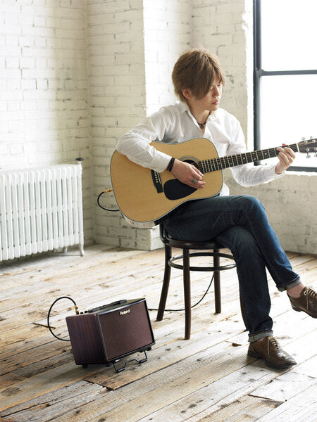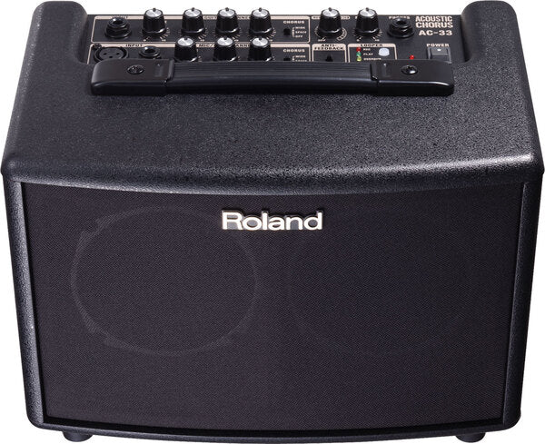 Sonido estereo rico y profundo para llevar — introduciendo el AC-33, el primer amplificador operado por baterias del mundo desarrollado especificamente, para la guitarra acustica. Portátil, pero sin embargo potente, el AC-33 proporciona sonido estéreo verdadero, canales Guitar y Mic/Line, efectos diseñados a su medida, anti-feedback y Phrase Looper. Pero este amplificador ha sido concebido para ir a lugares donde ningún otro amplificador ha ido nunca antes. Gracias a su capacidad de ser operado por baterías, el AC-33 te permite llevar a cabo tu acto a todo lugar: a la selva virgen, en las calles, trajineras, o a cualquier lugar que te dicte tu imaginación.