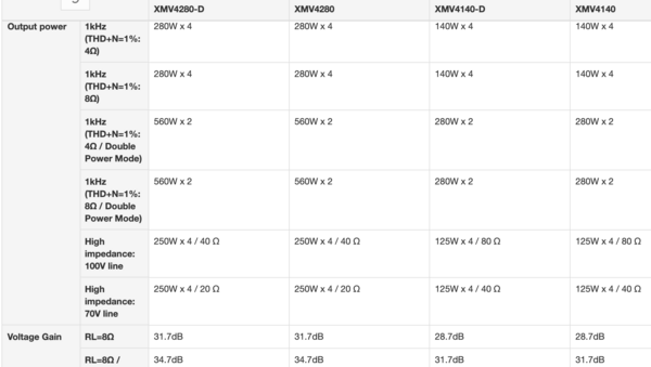 Los amplificadores multicanal de la serie XMV combinan la eficiencia de los amplificadores de Clase D con unas prestaciones específicamente diseñadas para que se beneficien de ellas los sistemas de sonido de las instalaciones comerciales. La serie se compone de 8 modelos con distinta potencia y gran flexibilidad en las conexiones de entrada/salida para poder adaptarse a una gran variedad de entornos de instalación.