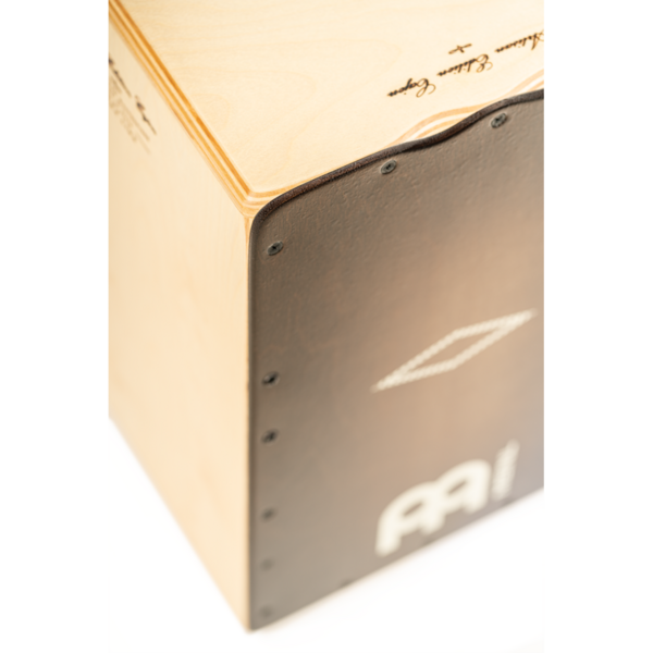 La línea Soleá viene en los majestuosos Espresso Burst, Ebony Burst y Dark Red Burst. Esta línea presenta dos grupos de cuatro cuerdas de cajón de metal micro-enrolladas preajustadas que se extienden por el interior de la superficie de juego. Estas cuerdas están enrolladas a mano al estilo del maestro constructor de cajones, José "Pepote" Hernández Diaz. Dentro de la línea de cajones Soleá hay un sistema bass reflex especial que mejora las notas graves para un sonido de graves más profundo. Las esquinas redondeadas y las muescas para el pulgar en la parte superior de la placa frontal y el cuerpo resonante optimizan la comodidad y el sonido al tocar. El cuerpo resonante de abedul báltico de 9 capas y 12 mm de grosor desarrolla el sonido en un tono completo y contundente que se proyecta con claridad y calidez. Hecho en España.