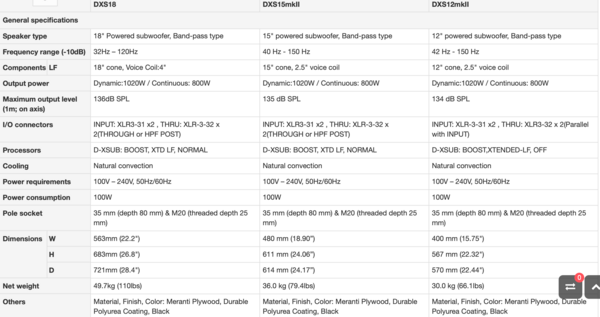 El DXS15mkII es capaz de producir frecuencias bajas apretadas y tronantes tan bajas como 40Hz y aun máximo de 135 dB SPL. Este modelo optimizado con el diseño band-pass en el cabinete y lo último en DSP asegura que una salida extremadamente poderosa sea enfocada, potente y sin distorsión.15" powered subwoofer with 1020W class-D power amplifier