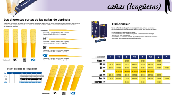 Las cañas Vandoren Traditional son las más jugadas en el mundo. Es un hecho. Estas cañas del famoso cuadro azul para clarinete Bb ofrecen cualidades acústicas únicas, un sonido brillante debido a la riqueza del timbre, gran facilidad en la secuencia de intervalos legato o staccato, así como facilidad de ejecución en todos registros. Las posibilidades de juego se multiplican por diez.
