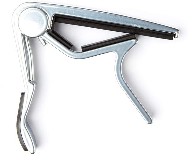 Esta cejilla de guitarra clásica de radio plano le permite cambiar de tono rápida y fácilmente con un apretón de mano sin obstaculizar sus dedos o rayar el cuello de su guitarra.