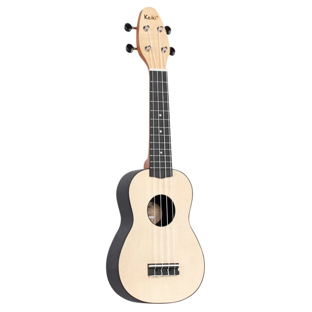 El Keiki® K2-MAP es un ukulele soprano diseñado para ofrecer un sonido brillante y una gran durabilidad en un formato compacto y ligero. Con una tapa de maple en acabado satinado y un cuerpo de ABS arqueado, este modelo combina estética natural, comodidad y resistencia, ideal para principiantes y músicos que buscan un instrumento práctico para llevar a cualquier lugar.