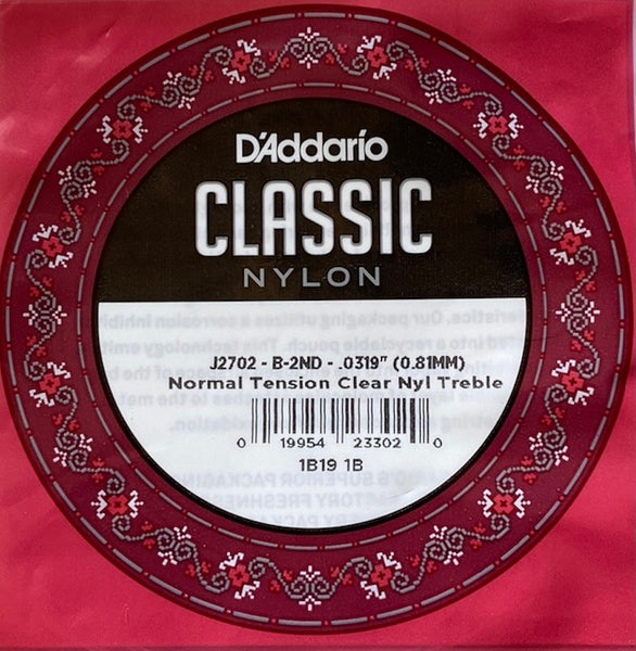 Cuerdas sueltas Guitarra Española Serie Classic Nylon B-2. Las cuerdas D'Addario EJ27 Classic Nylon son ideales para principiantes, estudiantes y profesionales. Los juegos de tensión normal.