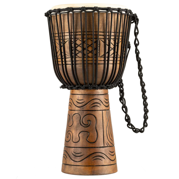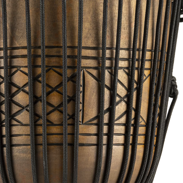 Con un acabado de madera natural envejecida con un motivo tallado a mano, los djembés de la serie Artifact parecen una reliquia nada más sacarlos de la caja. Las tallas a mano están pintadas en negro para acentuar los diseños contra las rústicas conchas de caoba. Las cabezas de piel de cabra seleccionadas a mano están aseguradas por el tradicional sistema de afinación de tejido Mali con corredores de cuerda de nailon PP preestirado.