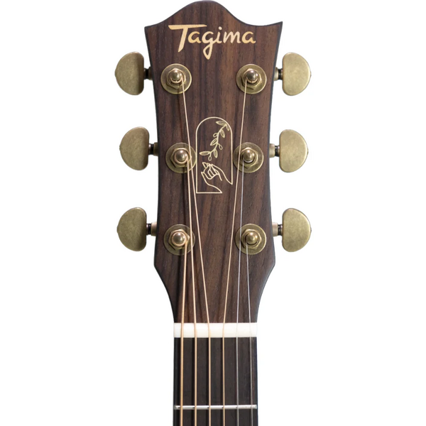 Tapa de abeto macizo recortada tamaño mediano, fondo y aros de nogal. Sistema de ecualización integrado Tagima Ambience con efectos (coro, retardo, reverberación y afinador. E/S USB-C para cargar la batería y directo a DAW