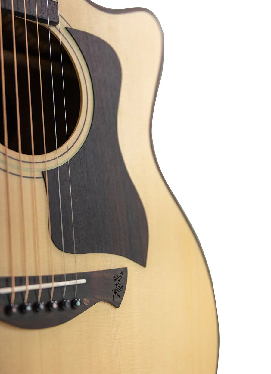 La Tagima Olive Grace EQ-NT es una guitarra electroacústica de cuerpo Medium Jumbo con cutaway, pensada para músicos modernos que buscan versatilidad, presencia escénica y un sonido natural, tanto en vivo como en estudio.