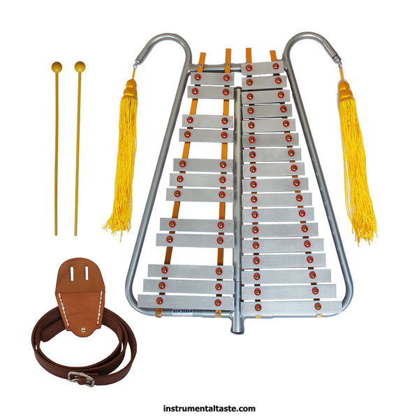 La lira es un instrumento de percusión idiófono que consta de un conjunto de placas metálicas afiladas. Cuando se fabrican de esta forma, también se los considera un teléfono de metal. Se puede golpear con varillas de madera, metal o plástico. Normalmente, sólo si llenas un lote en cada mano.