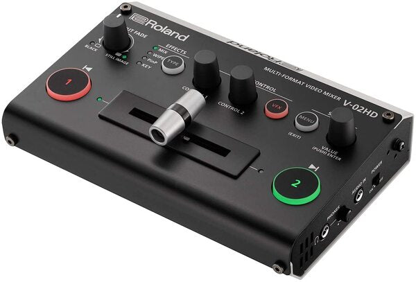 Los eventos o producciones a menudo conllevan serios desafíos que se resuelven fácilmente, si se cuenta con el equipo adecuado. El versátil mezclador de video multiformato V-02HD de Roland reemplaza varias unidades independientes; un conmutador simple, un escalador de alta calidad, un expansor de entrada, una solución de audio y efectos / composición de video en línea. Ahorre espacio y dolores de cabeza empacando un V-02HD; el dispositivo portátil pero potente que le permite concentrarse en producir su evento o filmar sus escenas, en lugar de solucionar problemas con su equipo.
