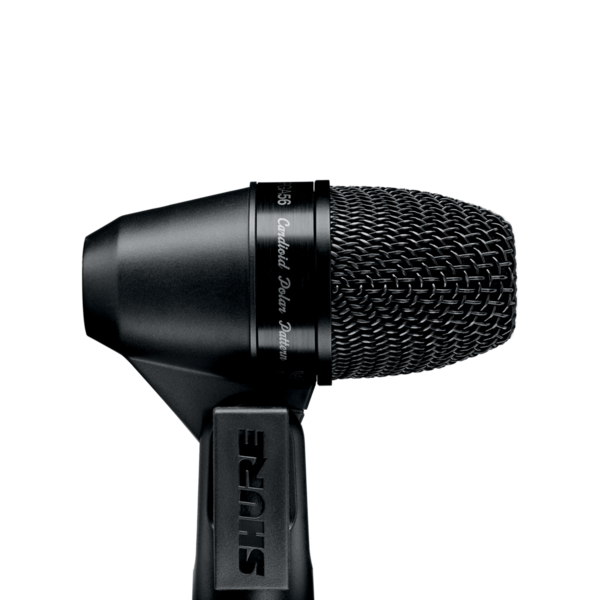 El PGA56 es un micrófono profesional para caja y timbales con un diseño discreto y moderno, con rejilla y acabados metálicos de color negro.