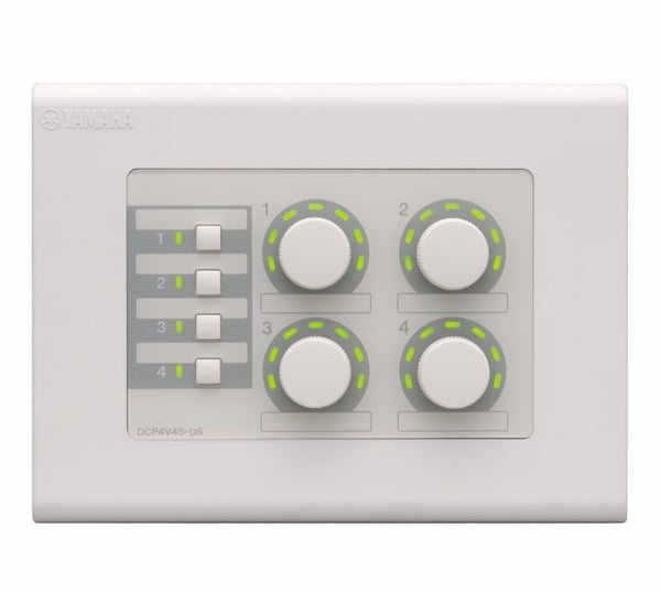 DCP4V4S con cuatro perillas de volumen y controladores de cuatro interruptores proporcionan un control externo flexible de varias funciones, como la recuperación de preajustes, los niveles y la reproducción de la tarjeta SD.