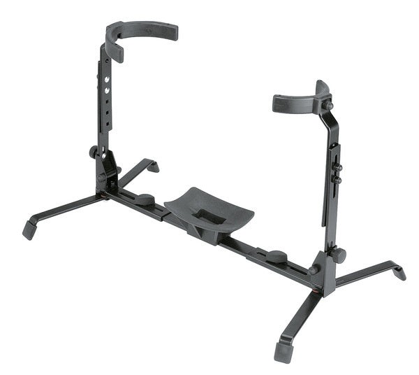 Para tubas alemanas e inglesas. Brazos de apoyo totalmente regulables en altura y anchura. Los brazos están cubiertos con material exclusivo que no daña para proteger los acabados de los instrumentos. Soporte de instrumento de fondo grande con material que no daña para proteger el instrumento de daños.