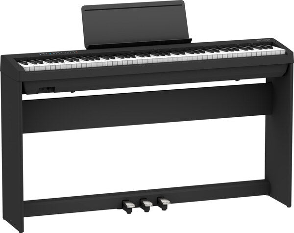 El Roland FP-30X no incluye el soporte (stand) en su versión estándar. Viene únicamente con: