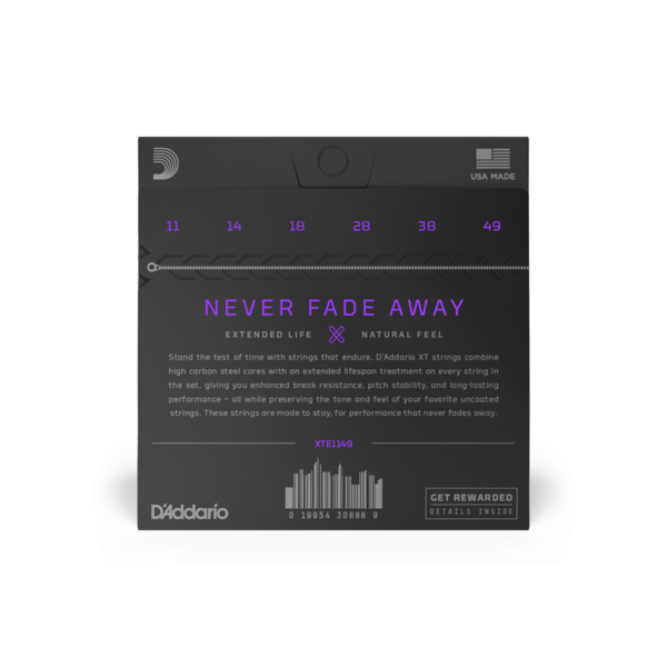 Las cuerdas de acero niquelado eléctrico D'Addario XT combinan nuestra aleación de guitarra eléctrica más popular con un tratamiento avanzado de resistencia a la corrosión en cada cuerda del juego, preservando el tono natural y la sensación de las cuerdas sin recubrimiento. Disponible para guitarras eléctricas de 6 cuerdas que van desde medidores superligeros hasta ligeros en la parte superior / inferior pesada.