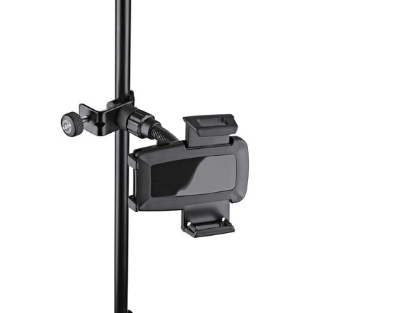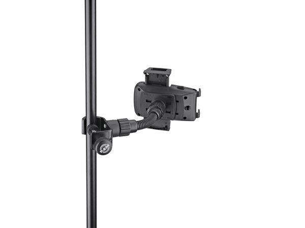Con este soporte universal tienes tu smartphone siempre a mano. El soporte es adecuado para todos los teléfonos inteligentes, como p. Ej. iPhone 4, iPhone 6 Plus o Samsung Galaxy con anchos que van de 44 a 84 mm. La operación es rápida y sencilla. Coloque el teléfono inteligente en el soporte, presione las empuñaduras y listo. Simplemente presionando un botón se puede quitar el dispositivo. Las abrazaderas con goma de musgo integrada garantizan una sujeción segura y eliminan los sonidos de vibración no deseados. Los pines de soporte intercambiables están disponibles en diferentes tamaños y se pueden ajustar a las necesidades de cada teléfono inteligente, de modo que los elementos operativos del dispositivo respectivo sean fácilmente accesibles. El soporte se puede colocar en cualquier ángulo, entre una posición vertical u horizontal. El robusto elemento de sujeción con un tornillo moleteado ergonómico facilita el montaje en cualquier tubo con un diámetro de hasta 30 mm. El brazo de extensión flexible tiene 110 mm de largo, lo que permite al usuario colocarlo en prácticamente cualquier posición.