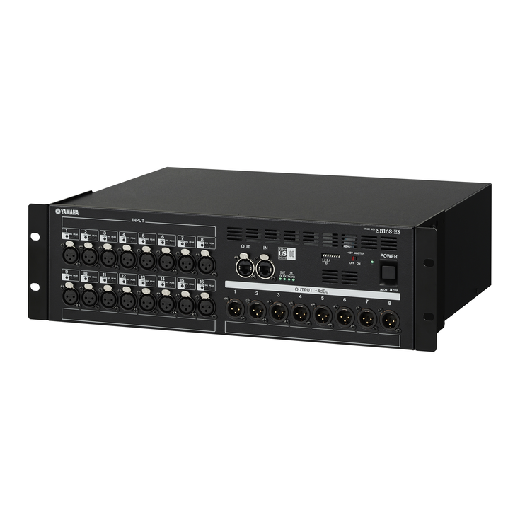 El Yamaha SB168-ES es un stage box digital 16×8 compatible con EtherSound, diseñado para complementar consolas digitales Yamaha como M7CL, LS9 y PM5D. En tan solo 3U de rack, ofrece 16 entradas analógicas con previo remoto y 8 salidas analógicas, permitiendo extender sistemas en vivo con mínima latencia, alta calidad y cableado simplificado.