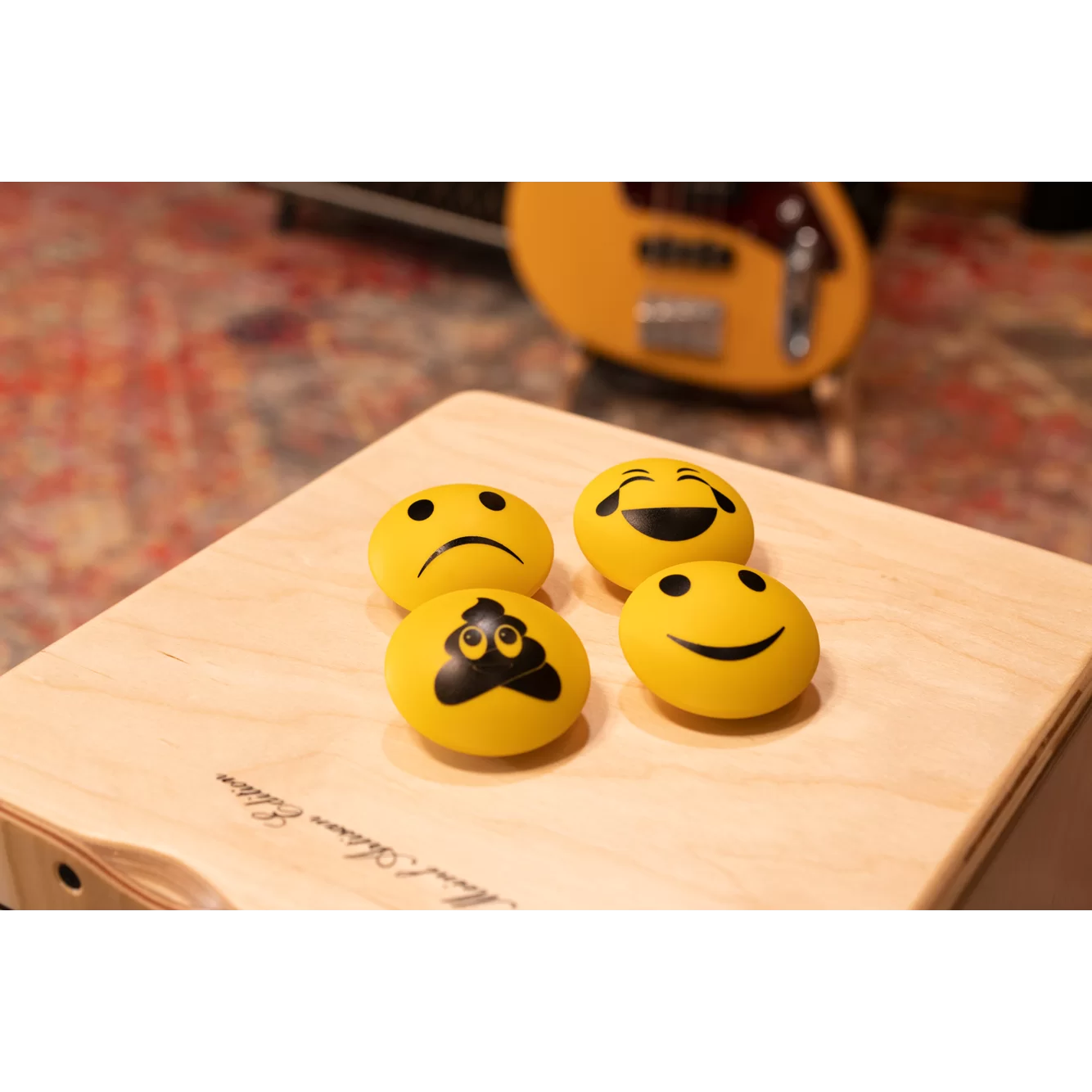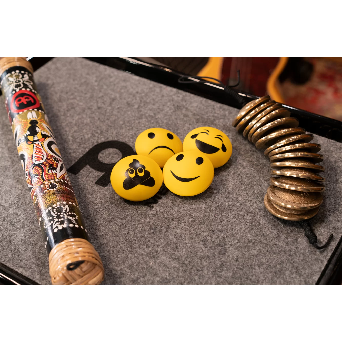 Inspirado en el diseño del MEINL U.F.O. Shaker (SH21GR), este modelo mantiene las mismas especificaciones técnicas, pero en un color amarillo brillante y con una variedad de gráficos impresos llamativos, que aportan un toque de personalidad al escenario.