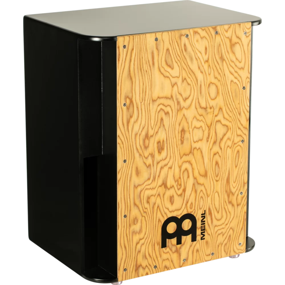 El MEINL SUBCAJ6MB-M es un cajón tipo Subwoofer vertical diseñado para maximizar la proyección de graves y ofrecer una presencia sonora más intensa, ideal para presentaciones acústicas y actuaciones en vivo. En lugar de la salida trasera tradicional, incorpora puertos frontales que proyectan el sonido hacia adelante, acompañados de un canal interno tipo bass-reflex para desarrollar frecuencias graves más profundas y potentes.